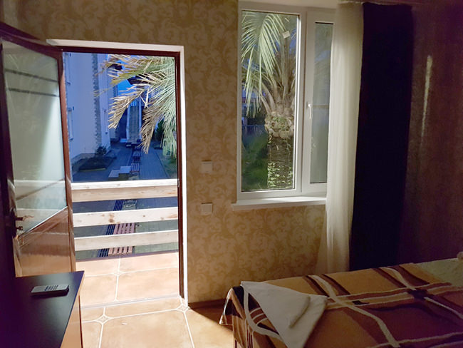 Площадь номера - 28 кв.м. 2 осн. места. 1 доп. место. Балкон. Мебель: вешалка, зеркало, кровать двуспальная, прикроватные тумбочки, шкаф. Оборудование: кондиционер, телевизор, холодильник. Санузел: с душем, туалетные принадлежности. Сервис: смена полотенец, смена постельного белья, уборка номера.